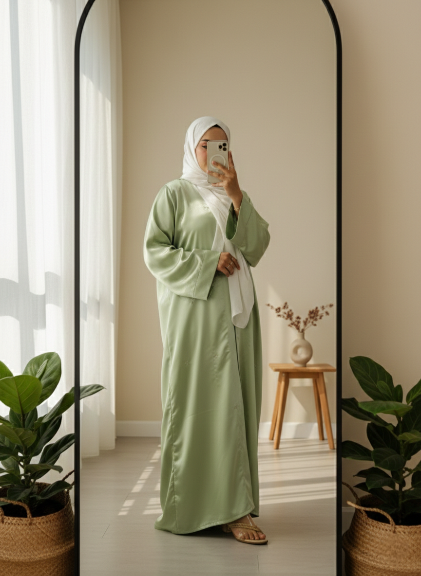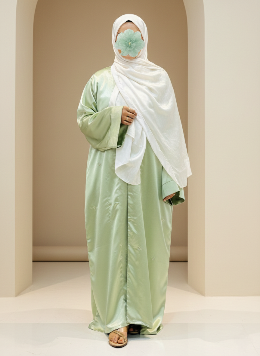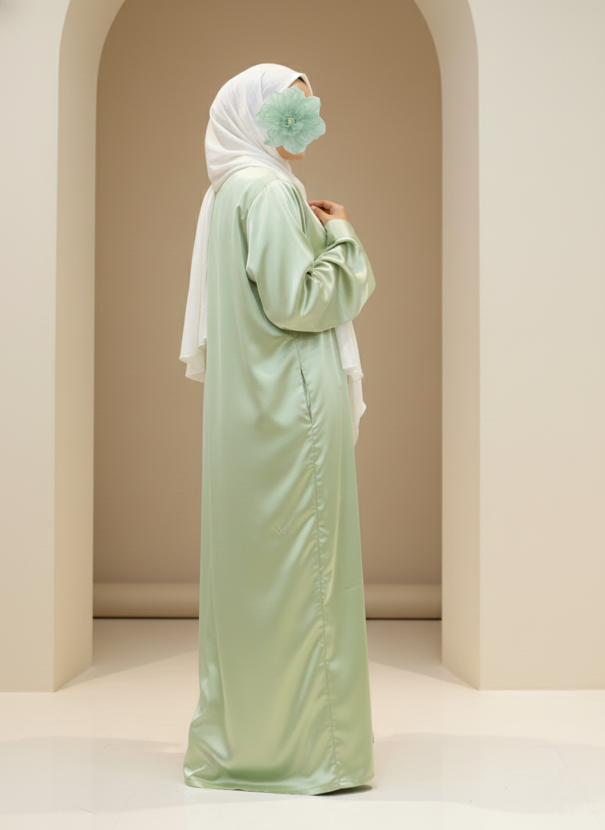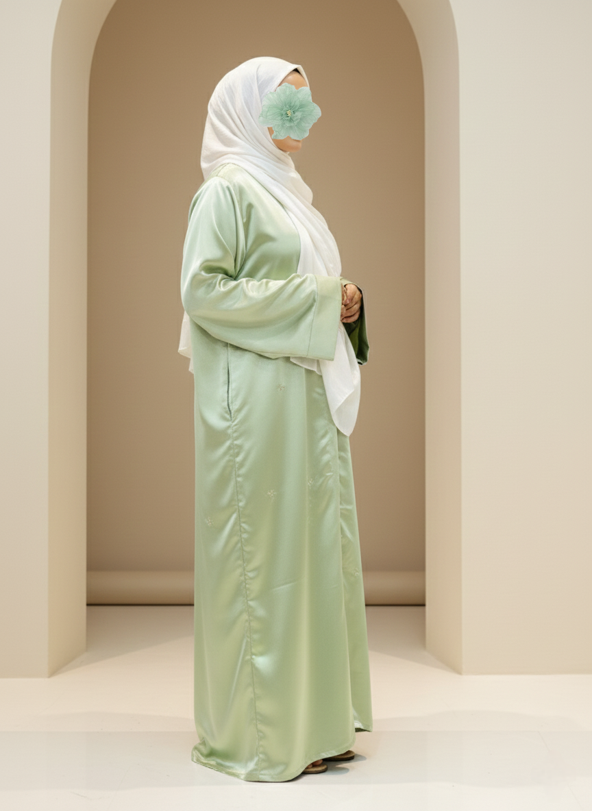 Cute All-Over Embroidery: Finished with tiny, delicate embroidery details spread all over the abaya, adding a subtle charm and making the piece feel extra special.