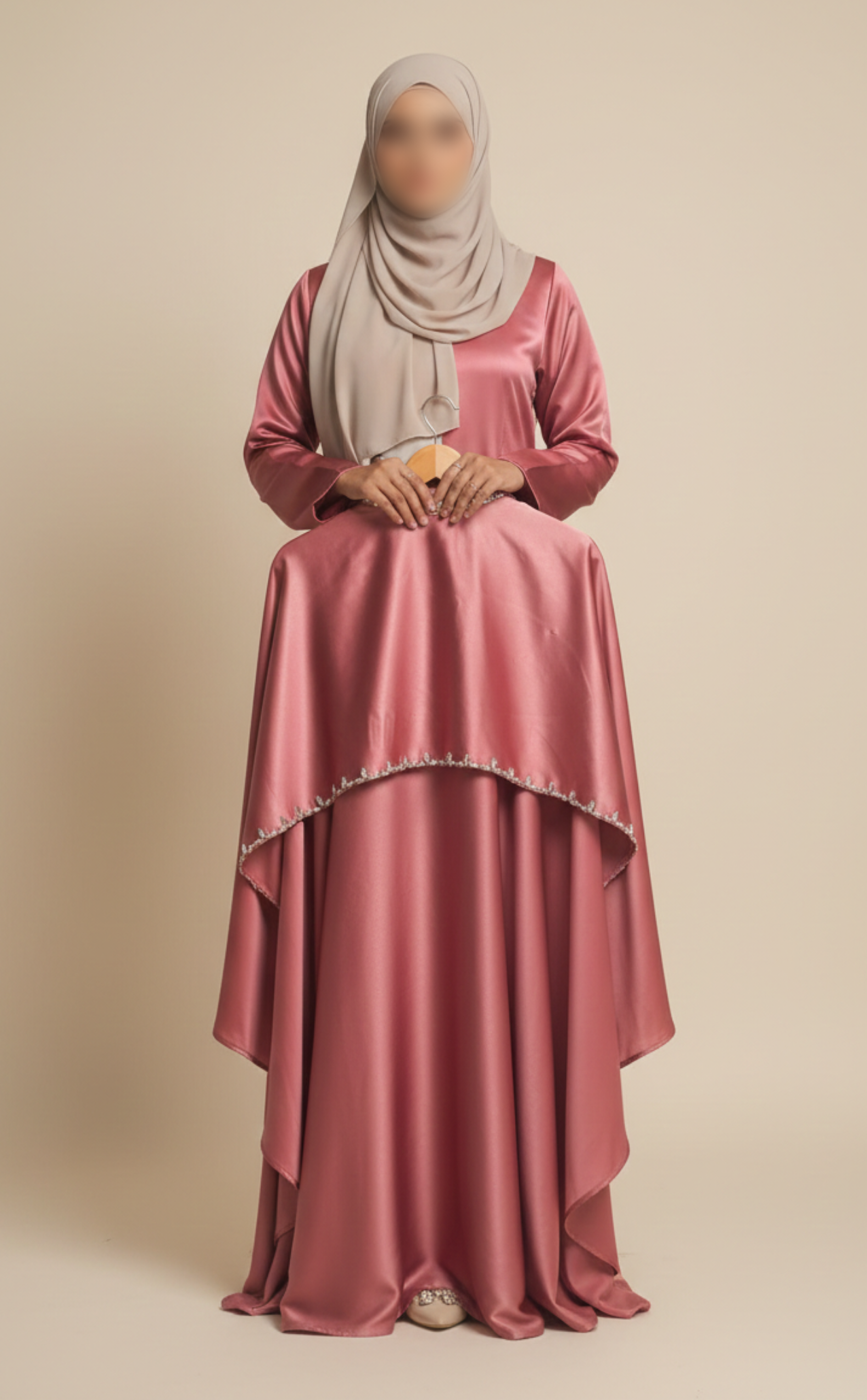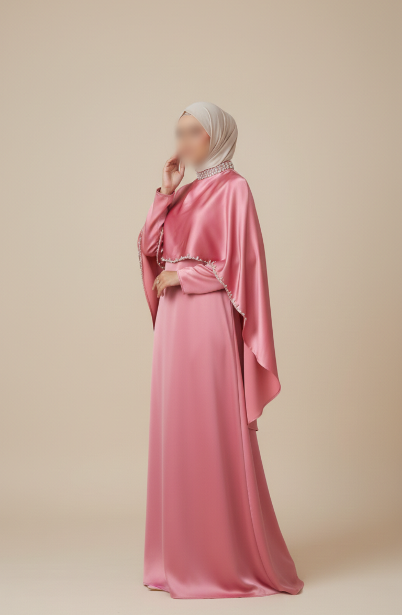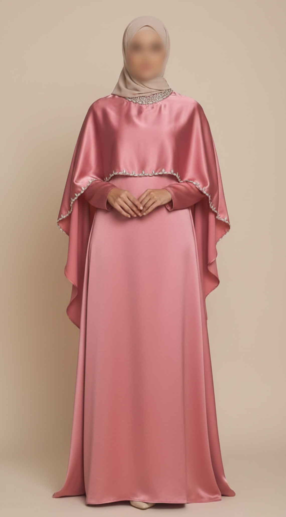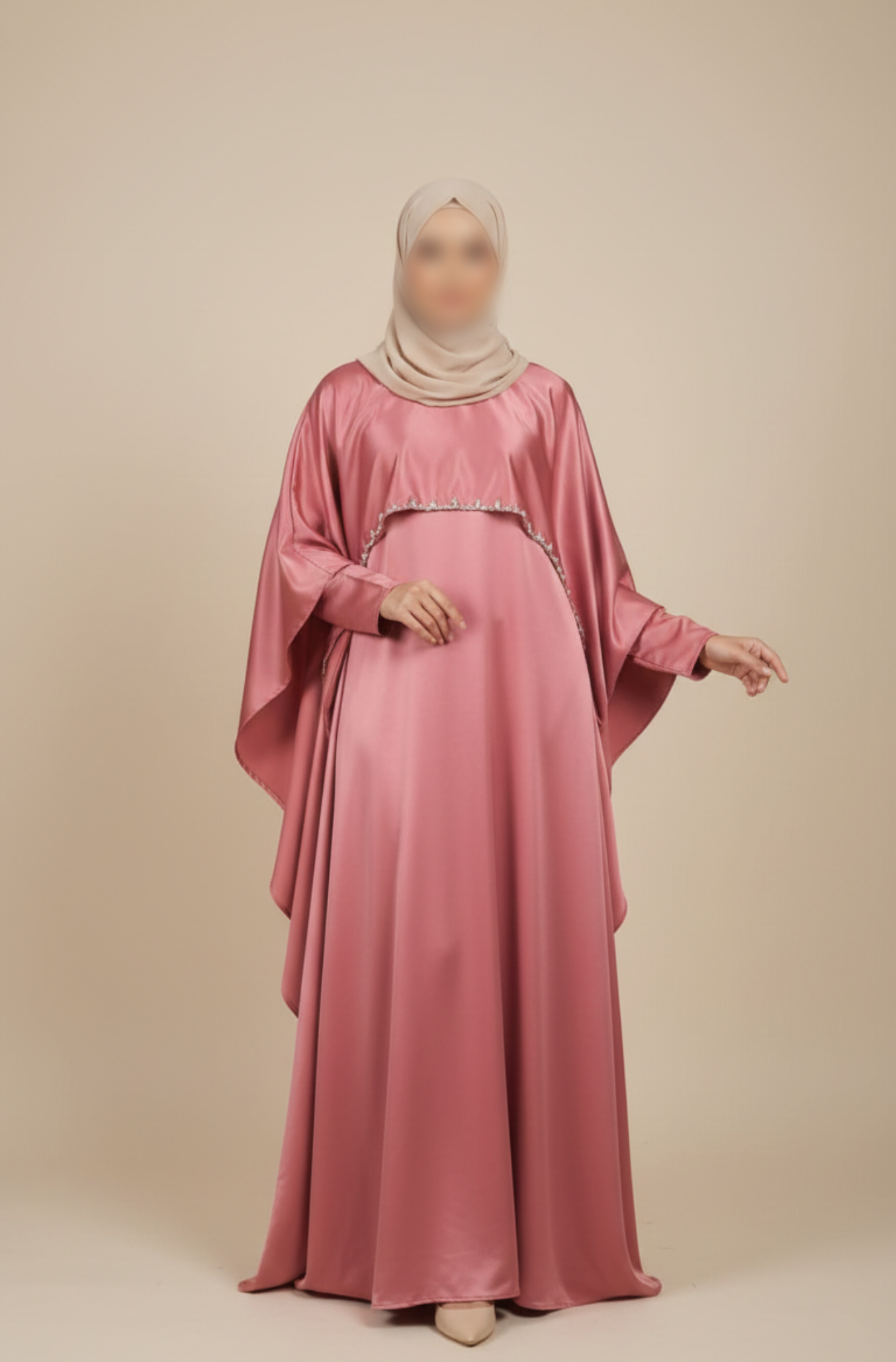 Rose Pink Double-Layer Cape Abaya