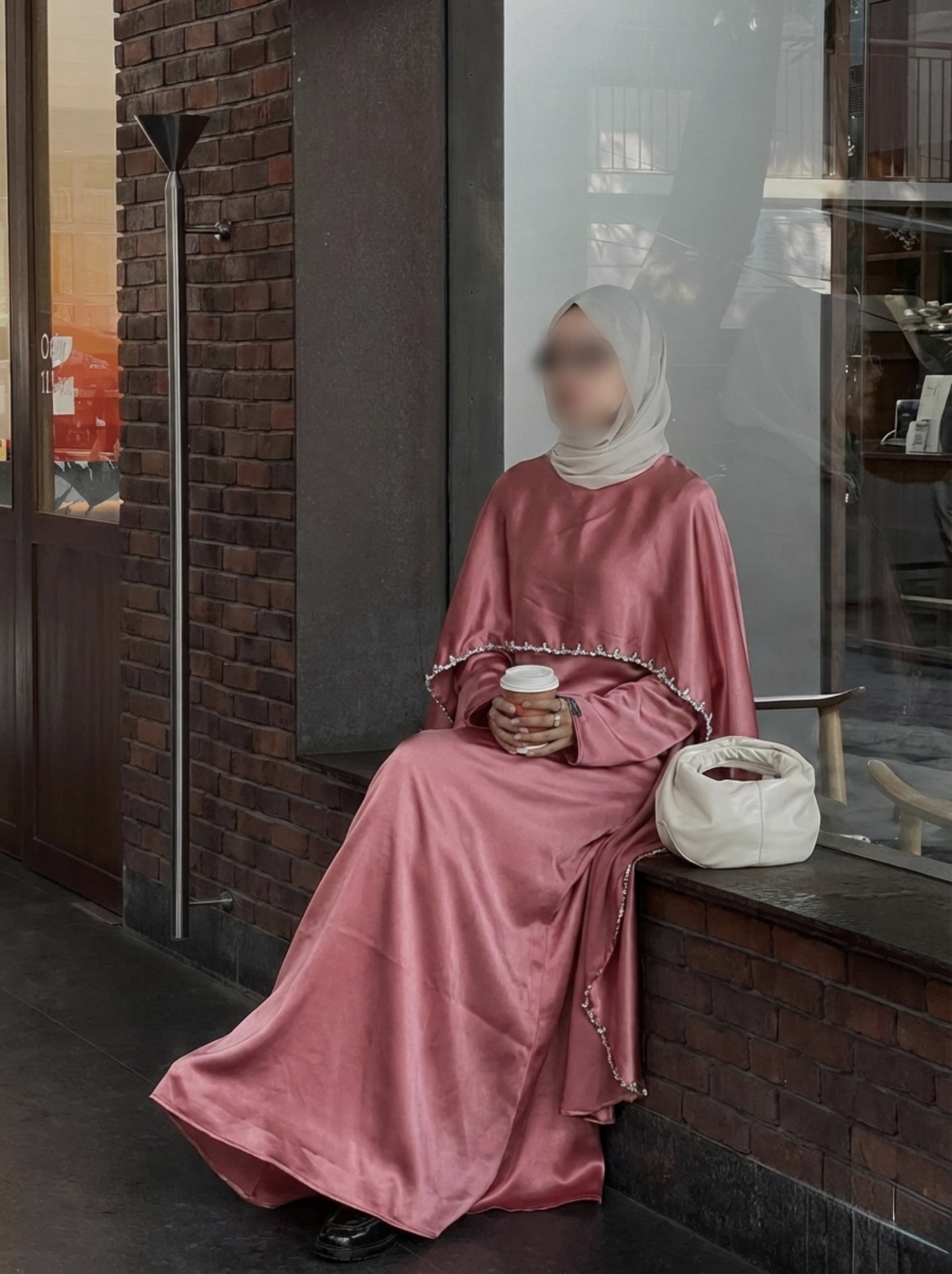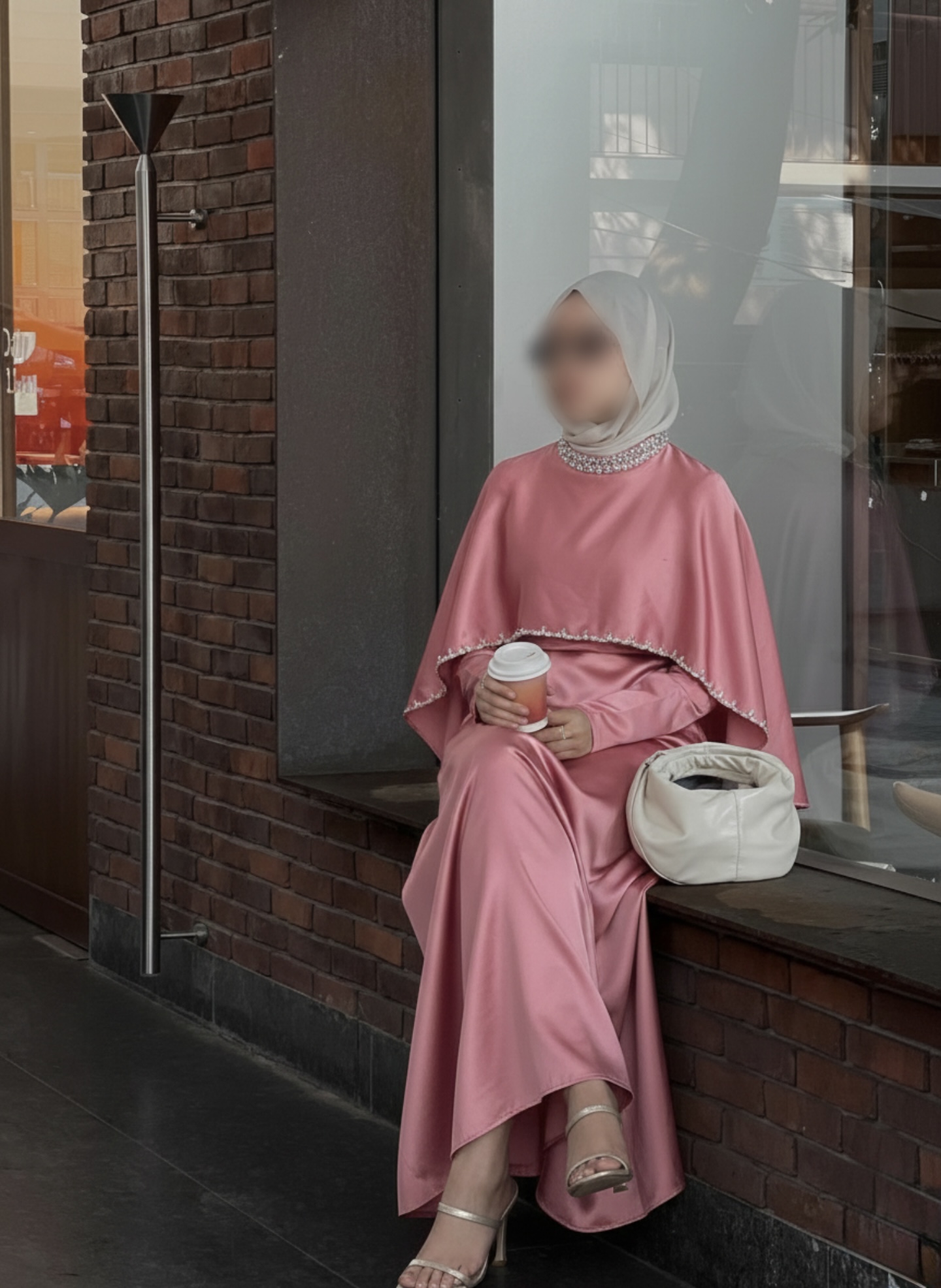Easy to style with minimal jewelry and a neutral hijab for an elegant finish